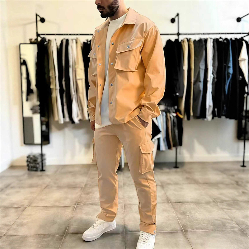 Men's Jacquard Tracksuit T shirt Shorts Set Outfit Set Crew Neck Outdoor Daily Sports Pocket Drawstring 2 Piece Plain Black Khaki Army Green Polyester Activewear Classic Casual Spring