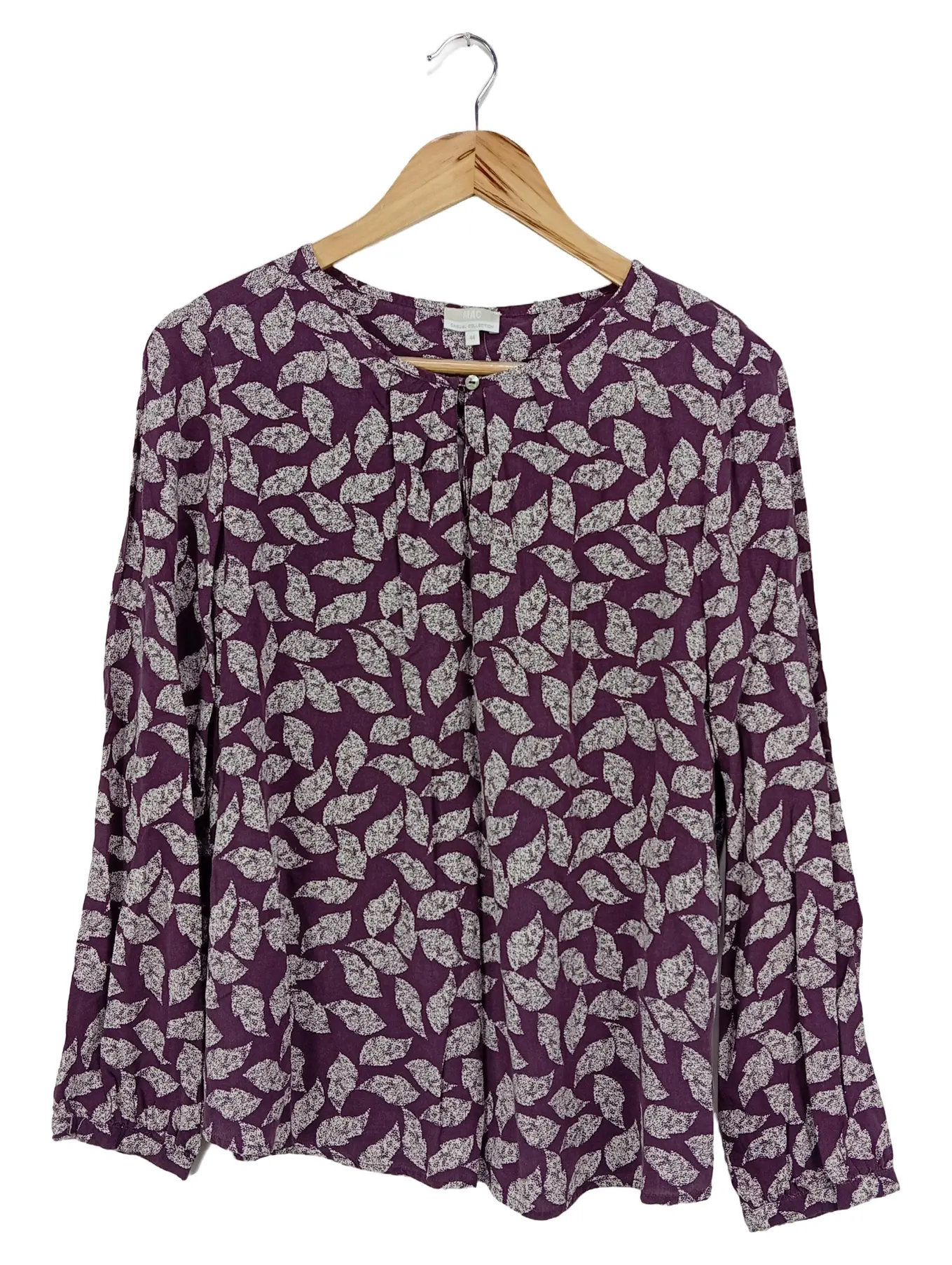 MAC Damen Bluse Lila Blättermuster Größe 44 Casual