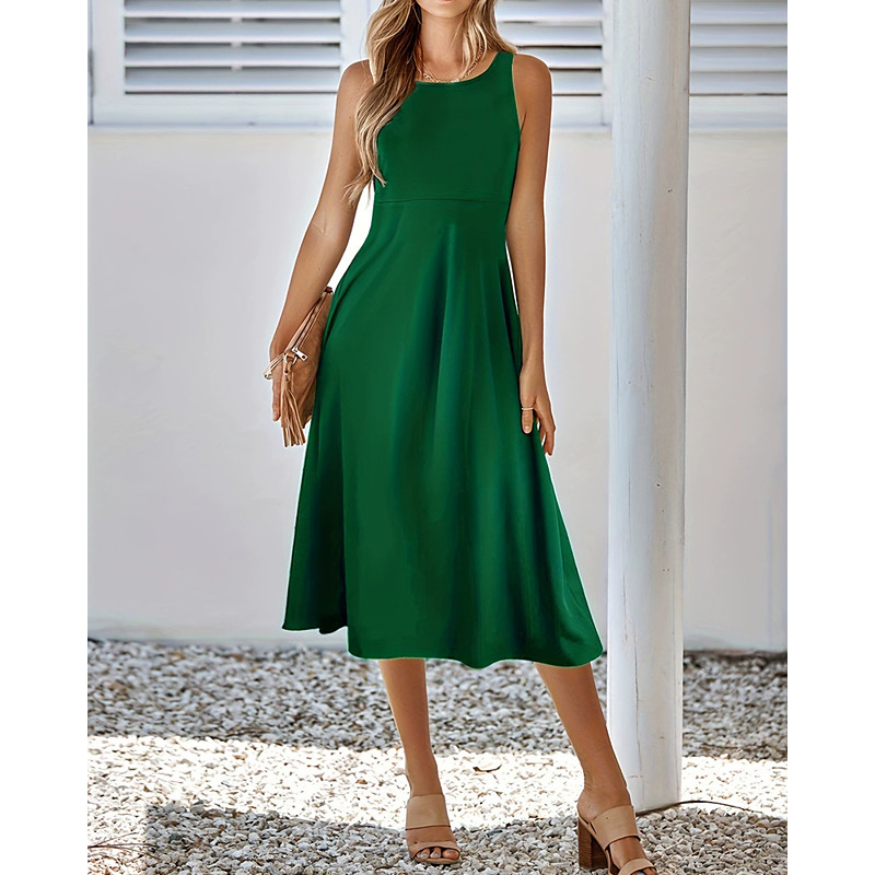 Women's Midi Dress Black Dress Casual Dress Elegant Fashion Modern Daily Outdoor Going out Regular Fit Plain Sleeveless Crew Neck Blue Black Pink Army Green Summer Spring Winter Autumn