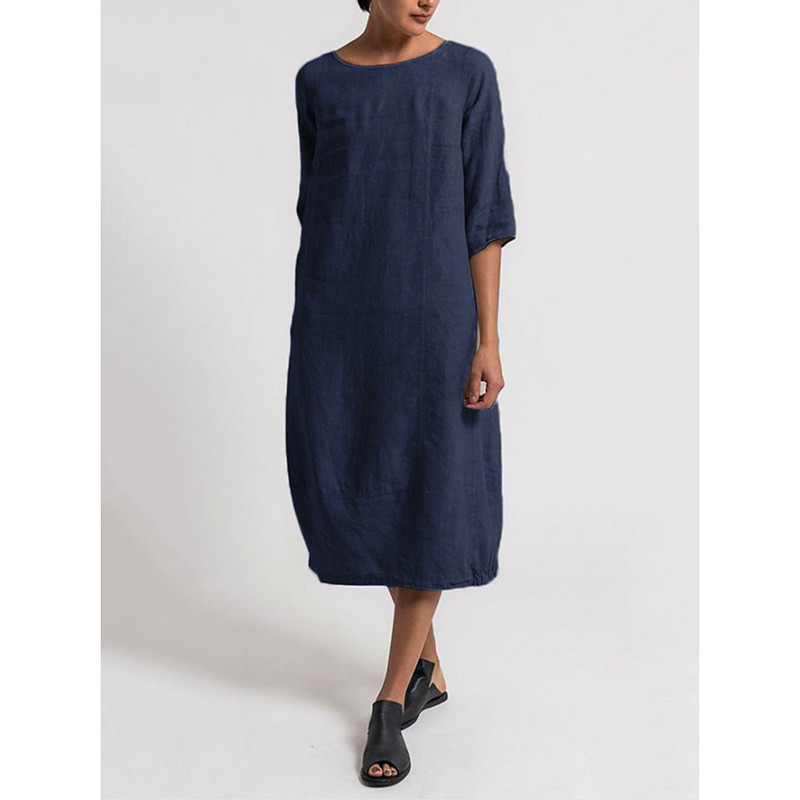 Women's Midi Dress Sundress Shift Dress Vacation Casual Boho Daily Beach Holiday Loose Fit Plain 3/4 Length Sleeve Crew Neck Navy Black Red Light Grey Summer Spring