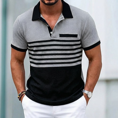 Per uomo Maglia da golf Polo a Maglia Waffle Casuale Affari Classico Manica Corta Moda Moderno Tinta unica A righe Bottoni Estate Primavera Vestibilità regolare Bianco Blu reale Verde Cachi Grigio