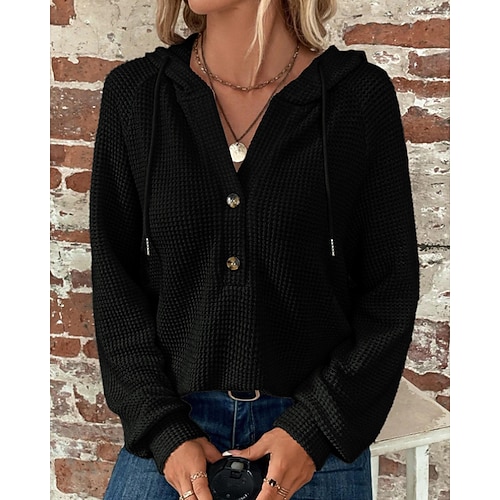 Per donna Felpa con texture Felpa con cappuccio Semplice Streetwear Casual Manica Lunga Con Cappuccio Top Regolari Casa Streetwear Ferie Bottoni Nero Bianco Blu marino Autunno Inverno