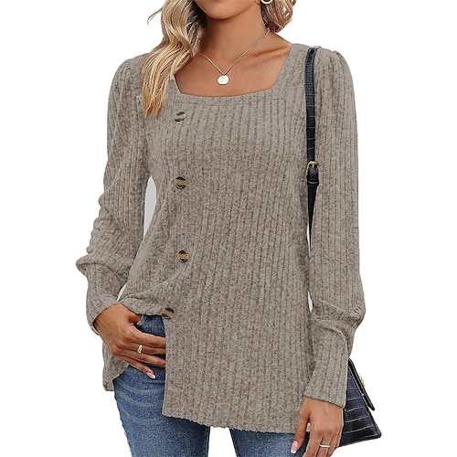 Per donna Blusa con texture Maglietta Semplice Moda Moderno Manica Lunga Collo quadrato Top Regolari Quotidiano Uscire Bottoni Marrone rossastro Nero Rosso Marrone chiaro Blu Primavera Autunno