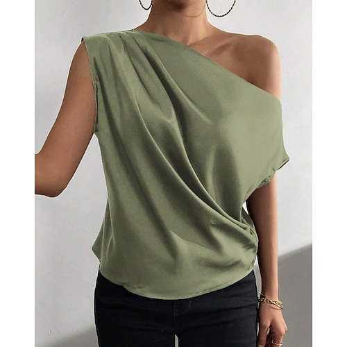 Per donna Camicia Elegant Raso/Satin Blusa Semplice Vintage Elegante Senza Maniche Asimmetrico Top Regolari Quotidiano Ferie Uscire Senza schiena Nero Verde chiaro Verde smeraldo Albicocca Estate