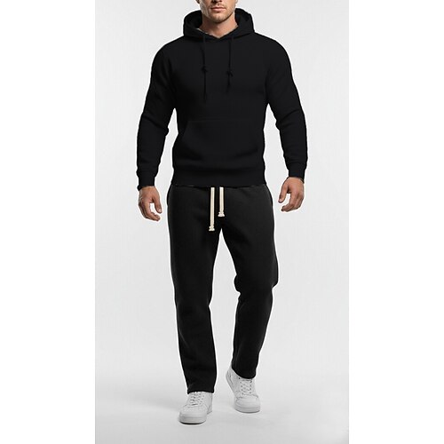 Per uomo Tuta da Ginnastica Felpa con cappuccio e pantaloni Set di abiti Felpa con Cappuccio All'aperto Quotidiano Sportivo Coulisse Tasca Semplice Blu Nero Grigio chiaro Abbigliamento sportivo Moda