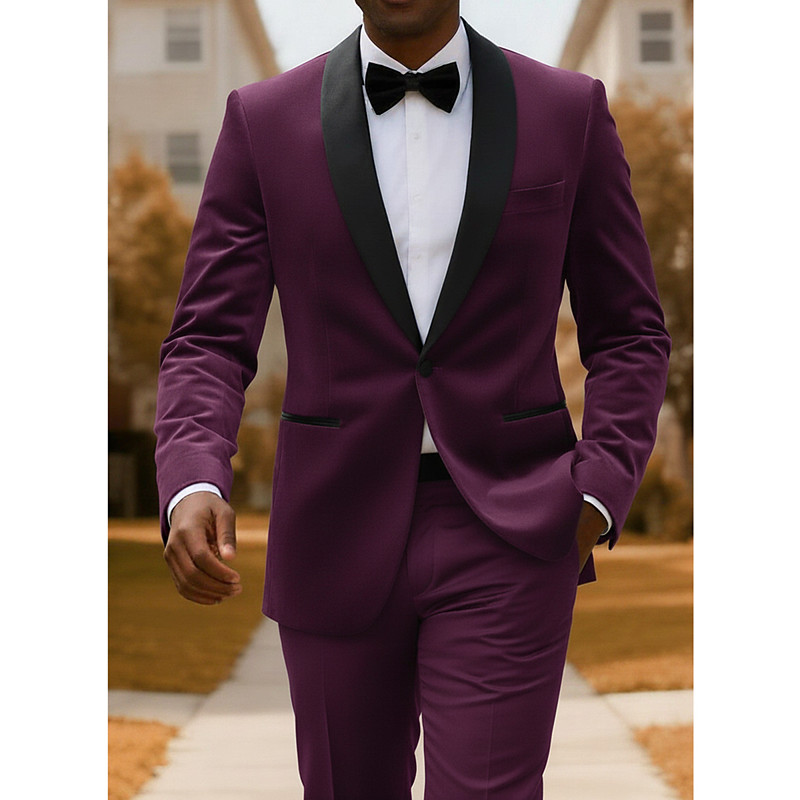 Men's Wedding Party Business Suits Shawl Lapel Black Burgundy Formal Solid Colored Standard Fit 2 Piece Single Breasted One-button