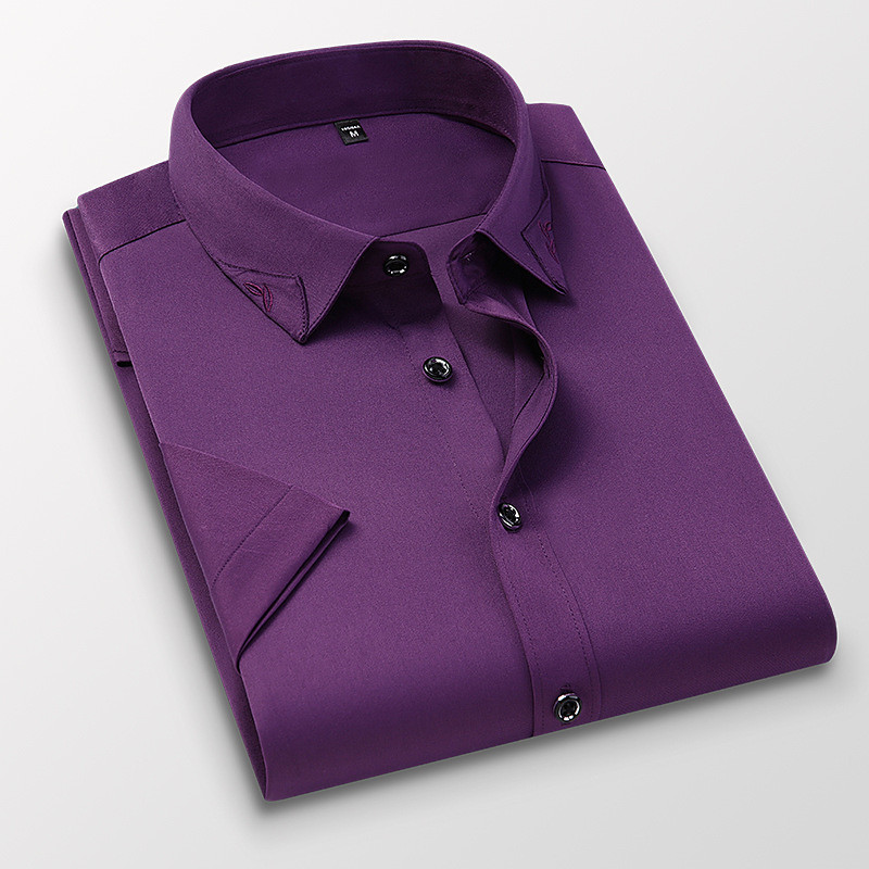 Men's Dress Shirt Plain Wedding Outdoor Wine Black White Pink Short Sleeve Square Neck Summer Clothing Apparel Button-Down