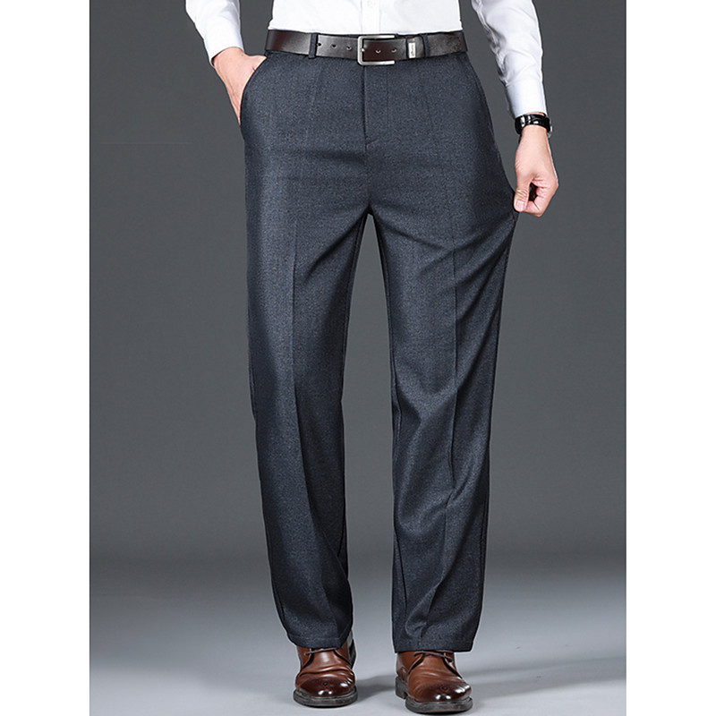 Men's Dress Pants Trousers Suit Pants Pocket Plain Comfort Breathable Outdoor Daily Going out Fashion Casual Black Dusty Blue