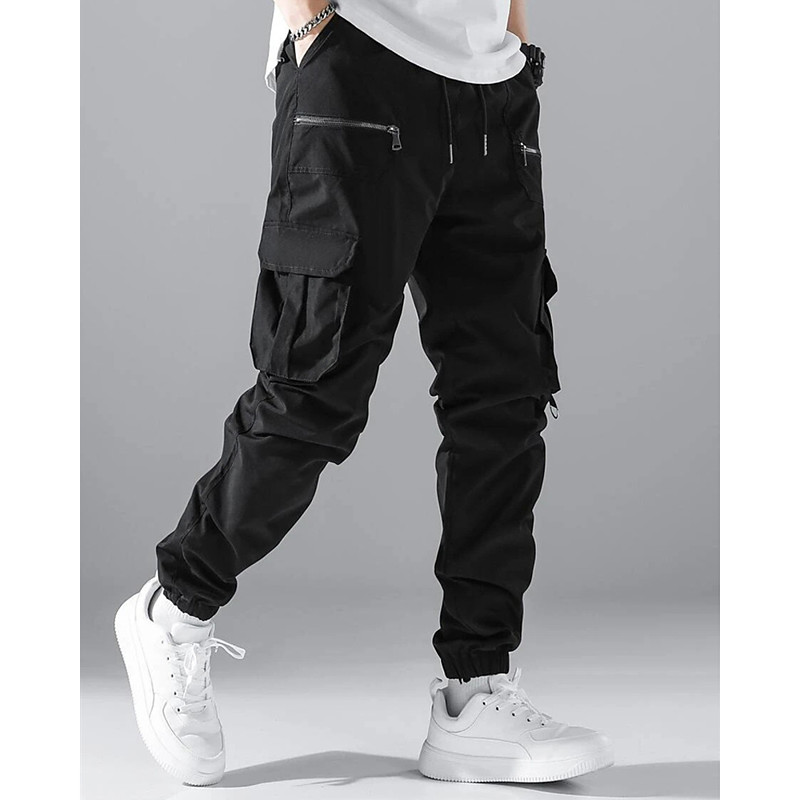 Men's Cargo Pants Joggers Trousers Elastic Waist Multi Pocket Plain Wearable Outdoor Daily Casual Black Army Green