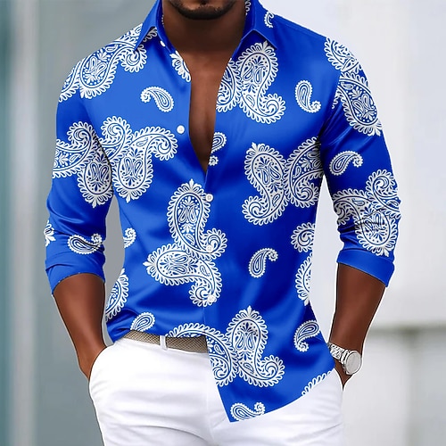 Herren Paisley-Muster Blumendruck Ethnisch Hemd Satinhemd Kleidhemd Langarm Vintage-Retro Urlaub Alltagskleidung Sommer Frühling Herbst Umlegekragen 3D-Druck Hemden mit Knopfleiste Weiß Gelb Blau
