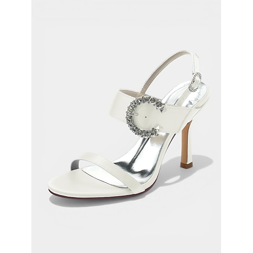 sandali da sposa eleganti con cinturino alla caviglia e tacco a spillo da donna, scarpe da sposa con tacco alto e punta aperta per la sposa, tacchi da cerimonia bianchi minimalisti