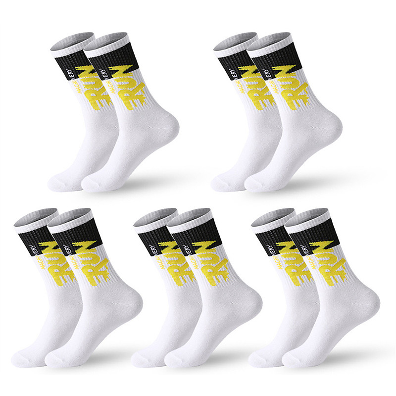 Men's 5 Pairs Multi Packs Socks Crew Socks Running Socks Casual Socks Black White Color Color Block Letter Vacation Sports Outdoor Daily Basic Medium Spring Fall Fashion Casual