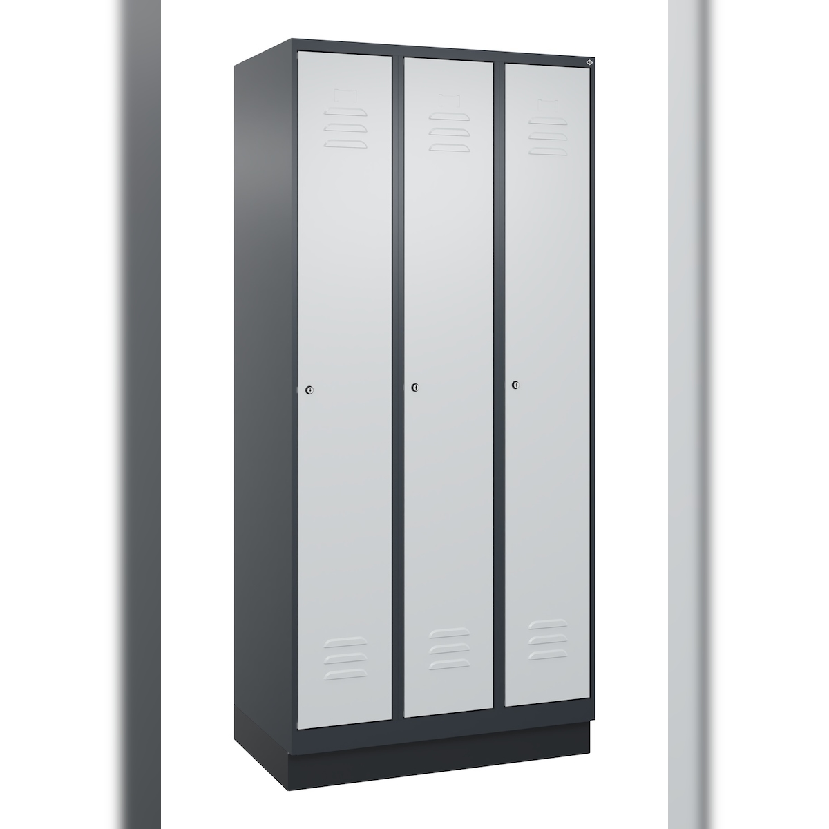 C+P Spind Classic PLUS, Sockel, 3 Abteile, HxBxT 195x90x50cm, Zylinderschloss, Anthrazit/Hellgrau von PROREGAL