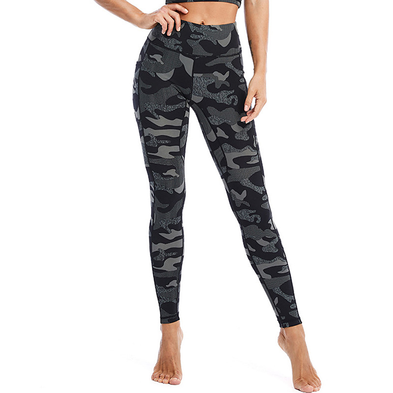 Women's Capri Leggings Yoga Leggings with Pockets Tummy Control High Waist Gym Athletic Pilates Bottoms Printing Black Army Green Green Fall Sports Activewear Tight Fit