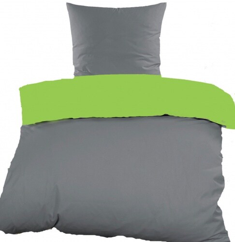 KH-Haushaltshandel 2-tlg. Renforce Wende Bettwäsche 135x200 + 80x80 cm, 100% Baumwolle, grau grün, uni/einfarbig