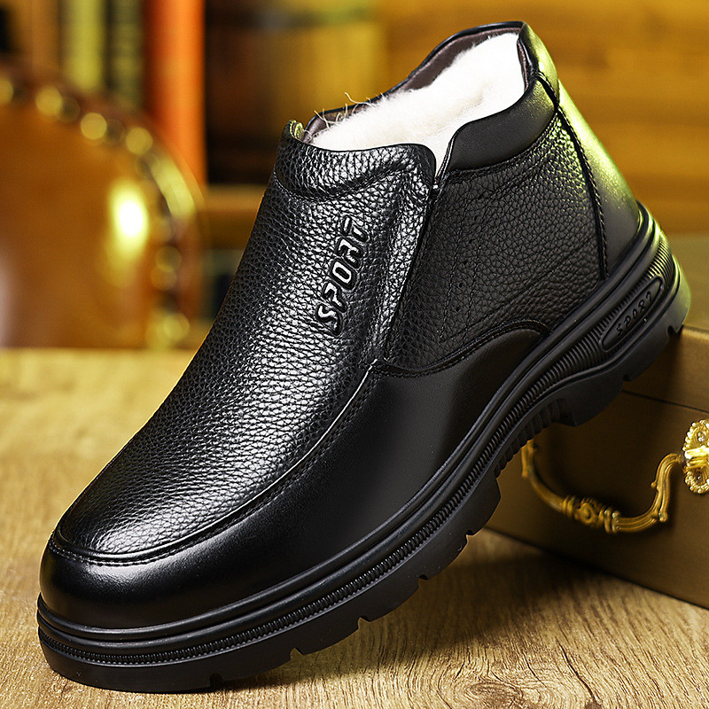 Men's Black Slip-On Faux Leather Boots – Comfortable and Sleek Design, Perfect for Casual Wear and Winter Outings