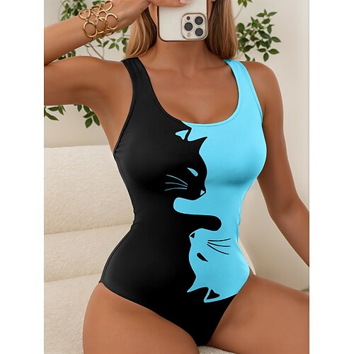 Costume intero da donna snellente a blocchi di colore stampa gattino abbigliamento da spiaggia per le vacanze costumi da bagno