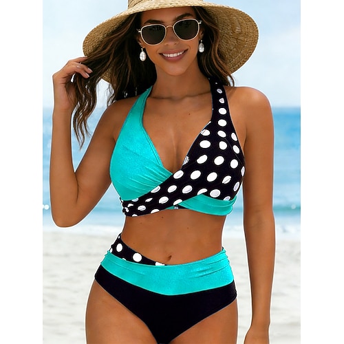 Per donna Costumi da bagno Bikini Vita alta Costume da bagno Vacanza Moda Grafico A Pois All'americana Senza Maniche Costumi da bagno