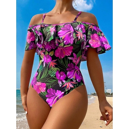 Per donna Costumi da bagno Intero Taglio alto Costume da bagno Elegante Vacanza Floreale Grafico Senza Maniche Costumi da bagno