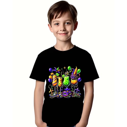 Cotone Carnevale Bambini Ragazzi Nero Grafico Bicchiere di vino Maglietta Blusa Girocollo Manica Corta Casuale Quotidiano All'aperto Moda Streetwear Designer Stampa Estate