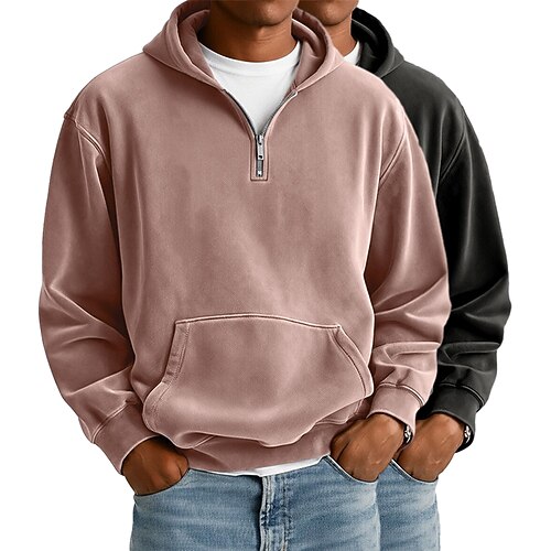 Per uomo Felpa con cappuccio Maglione Felpa con cappuccio e zip corta Nero grigio chiaro Grigio rosa Verde militareMarrone Blu navy vino Verde chiaro viola Con Cappuccio Semplice Zip a un