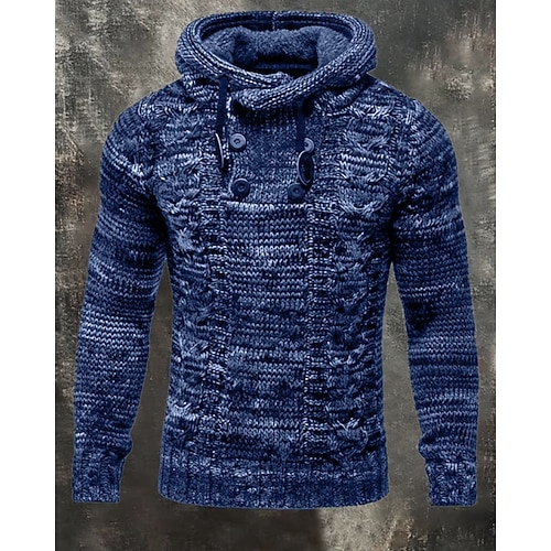 Per uomo Felpa Maglione Maglione a maglia A Coste Maglia Top Regolari Lavorato a maglia Semplice Con Cappuccio Vintage Moda Casuale Abbigliamento quotidiano Abbigliamento Autunno Inverno Vino Blu S M