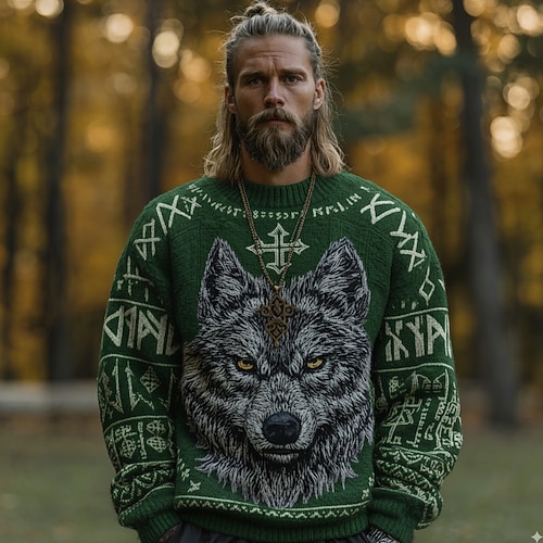 Per uomo Lupo Con Motivo Animale Vichingo Maglione Maglieria Girocollo Retrò Vintage Casual Vacanza Streetwear Quotidiano Stampa 3D Lavoro a maglia Tenere al caldo Manica Lunga Primavera Autunno