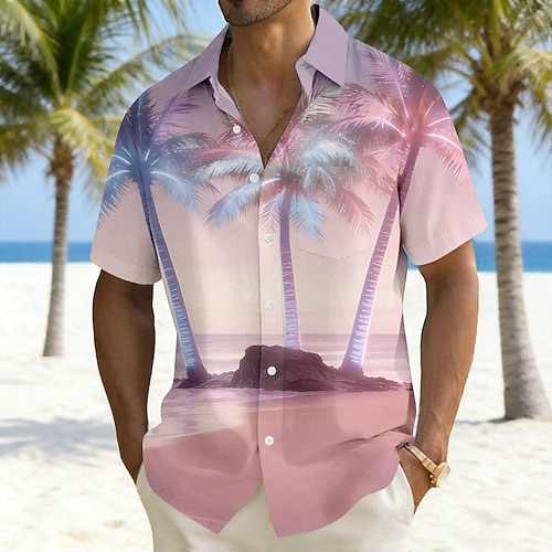Per uomo Albero di Cocco Paesaggio Bagliore al neon Camicia Camicie hawaiane Camicia Aloha Manica Corta Hawaiano Vacanza Ferie Estate Collo ripiegato Stampa 3D Una tasca anteriore Camicia tipo lino