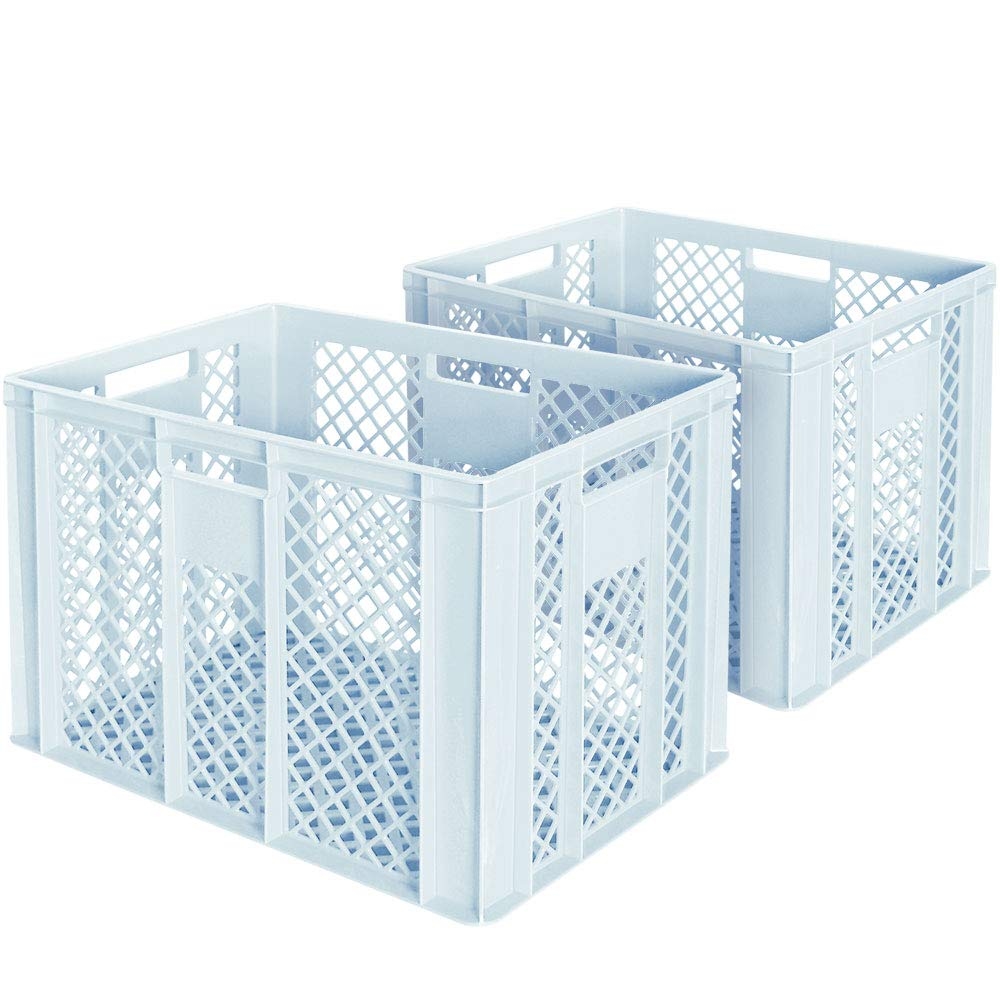 2x Eurobehälter/Bäckerkiste, LxBxH 600 x 400 x 410 mm, lebensmittelecht, Boden und Wände durchbrochen, weiß