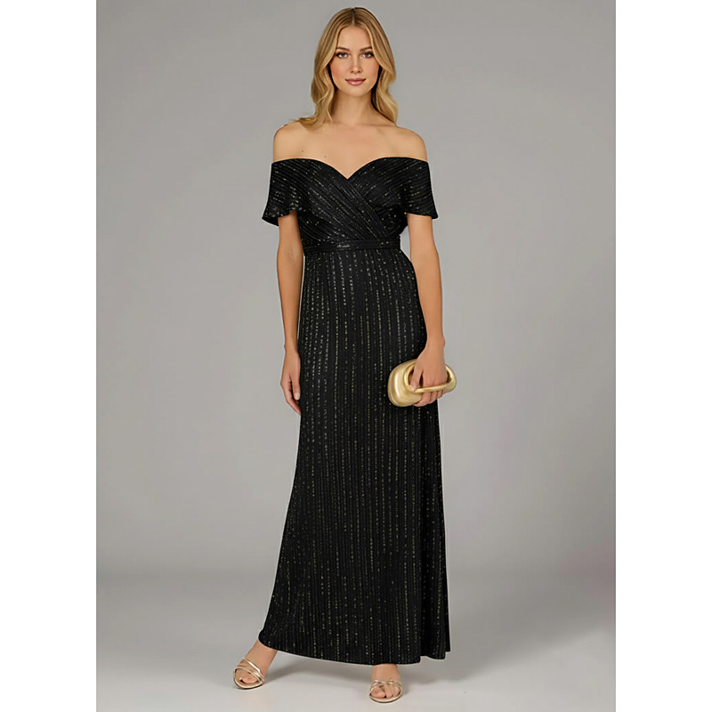 A-Line Floor Length Evening Gown Ball Gown Formal Dress Elegant Vintage Short Sleeve Off Shoulder Wedding Formal Pocket Nylon with Slit Pocket