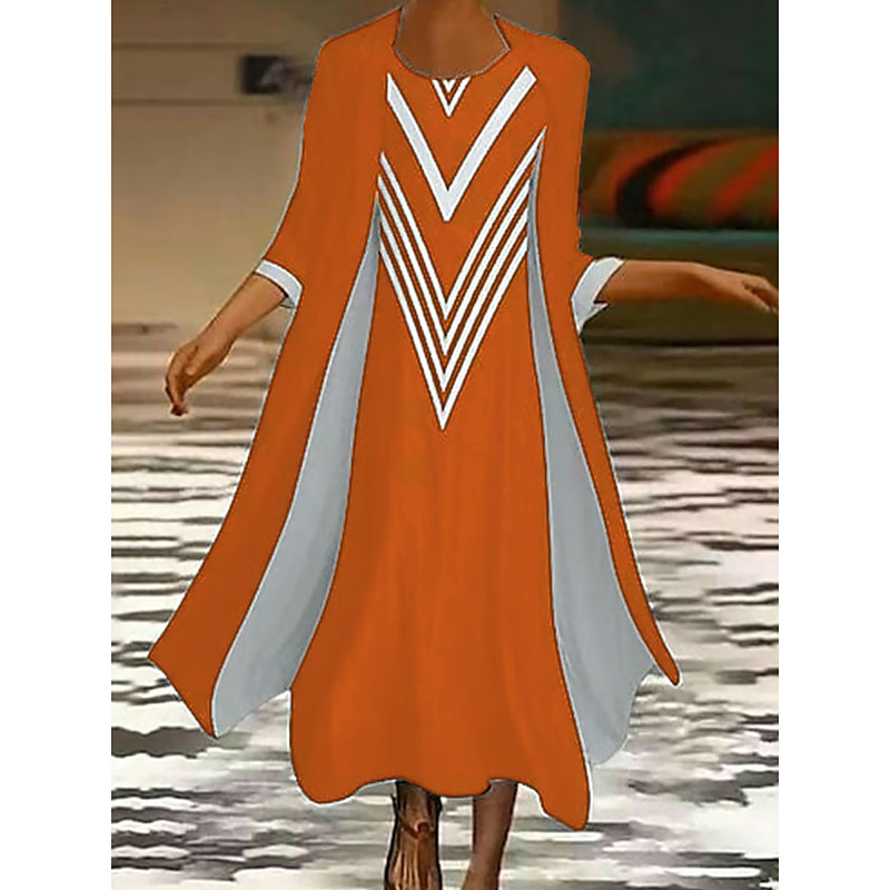 Women's Dress Set Maxi Dress Shift Dress Summer Dress Casual Graphic Geometric Layered Print Maxi Dress 3/4 Length Sleeve Crew Neck Daily Black Blue Orange Spring Fall Loose Fit