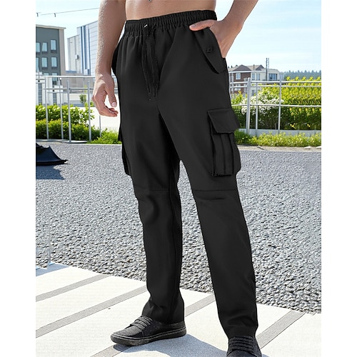 Herren Cargo-Hosen Cargohose Arbeitshosen Wanderhose Mehrere Taschen Gerader Schnitt Einfach Feuchtigkeitsableitend tragbar Volle Länge Outdoor Täglich Campen und Wandern Mode Streetwear Schwarz