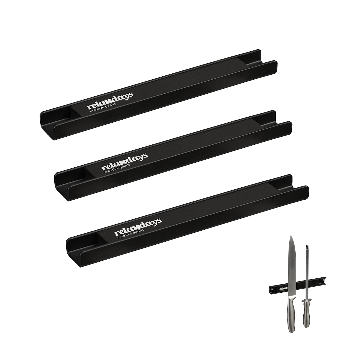Relaxdays Magnetleiste 3er Set, je 20 cm lang, Stahl, Messerhalter für Werkzeug & Messer, an die Wand schrauben, schwarz