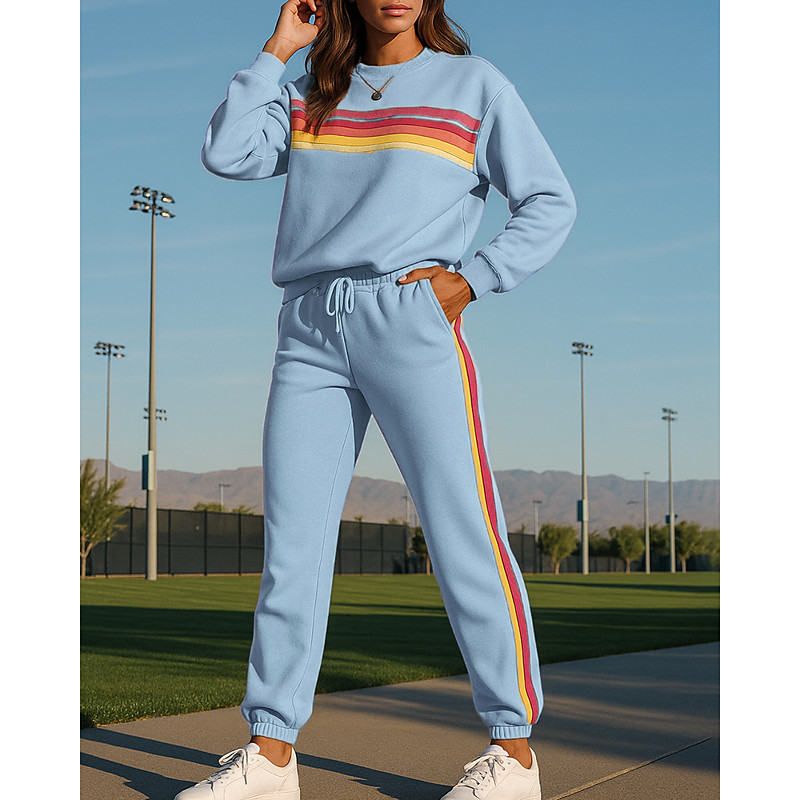 Women's 2 Piece Tracksuit Sweatsuit Sets Sportswear with Pocket Striped Clothing Suit Fall Dark Pink White Vocation Outdoor Travel Lightweight Fashion Long Sleeve Sport Activewear Micro-elastic