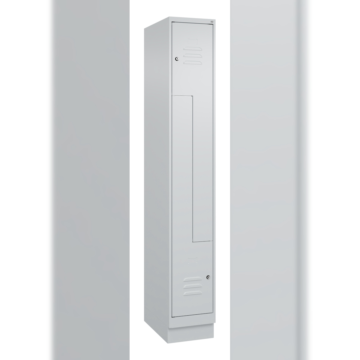 C+P Z-Spind Classic PLUS, Sockel, 2 Abteile, HxBxT 195x30x50cm, Zylinderschloss, Hellgrau/Hellgrau von PROREGAL