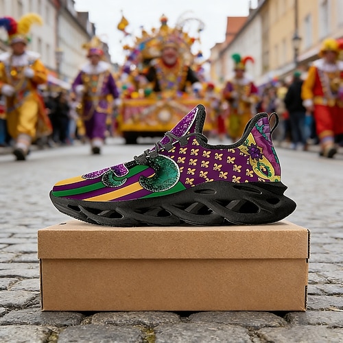 Sneakers comode di Carnevale per donne - Suola leggera e ammortizzata colore Mardi Gras stile audace per ballerini frequentatori di festival sfilate e passeggiate tutto il giorno