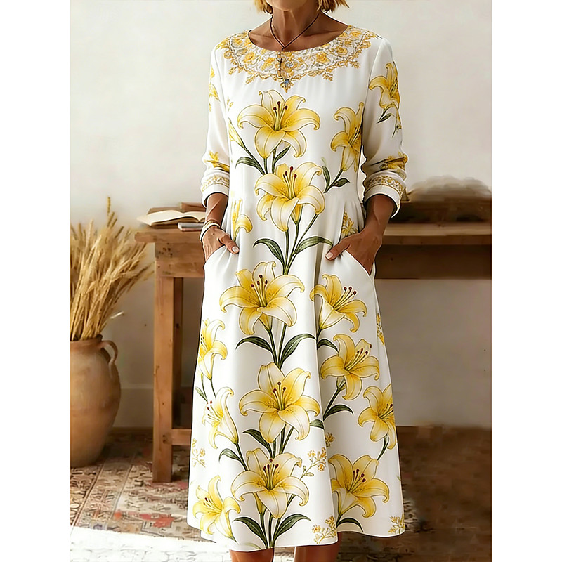 Jerseykleid ANISTON SELECTED, Damen, Gr. 42, N-Gr, pink (orange, pink, weiß, terra, rosa, ockergelb, orangerot), Milano Rib, Obermaterial: 89% Viskose, 9% Polyester, 2% Elasthan, bedruckt, gemustert, figurumspielend kniefrei, Rundhals, Kleider Jerseykleid