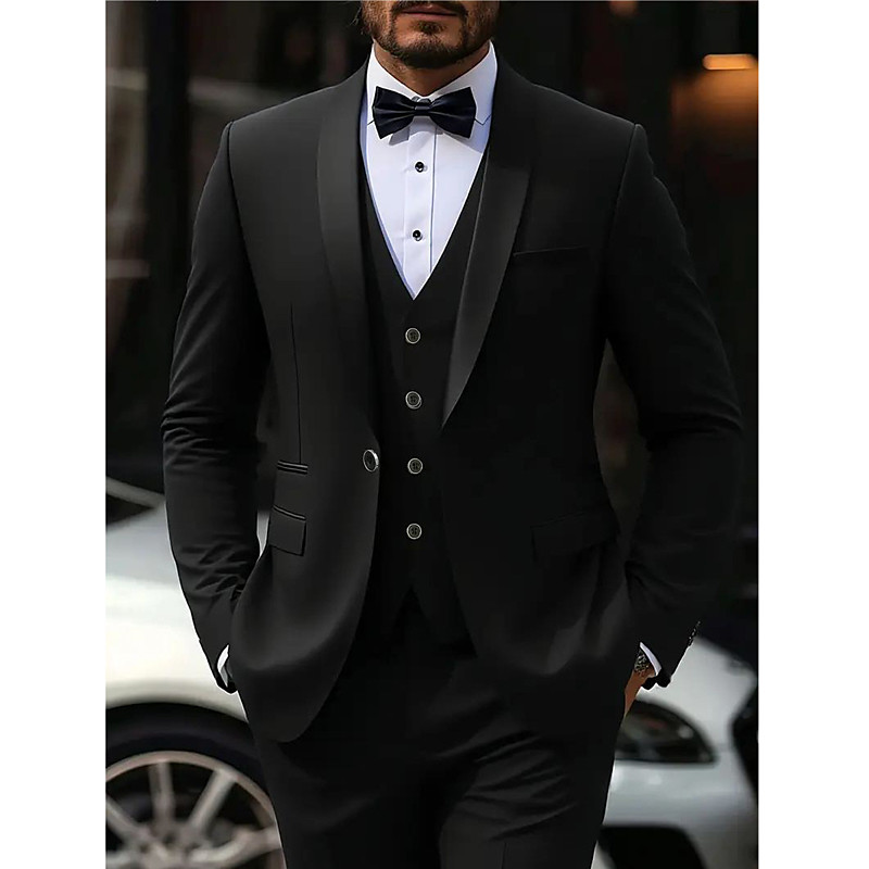 Men's Wedding Business Party Suits Shawl Lapel Black Burgundy Formal Solid Colored Slim Fit 3 Piece Single Breasted One-button