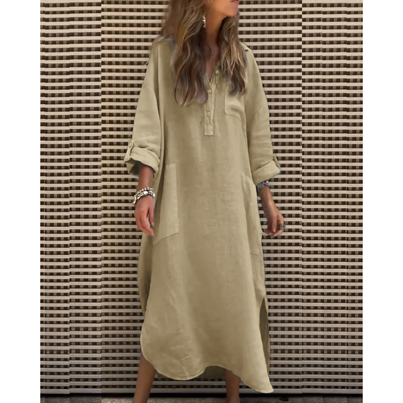 Women's Mini Dress Cotton Linen Dresses Basic Vacation Daily Regular Fit Plain Long Sleeve V Neck White Pink Green Khaki Summer Spring