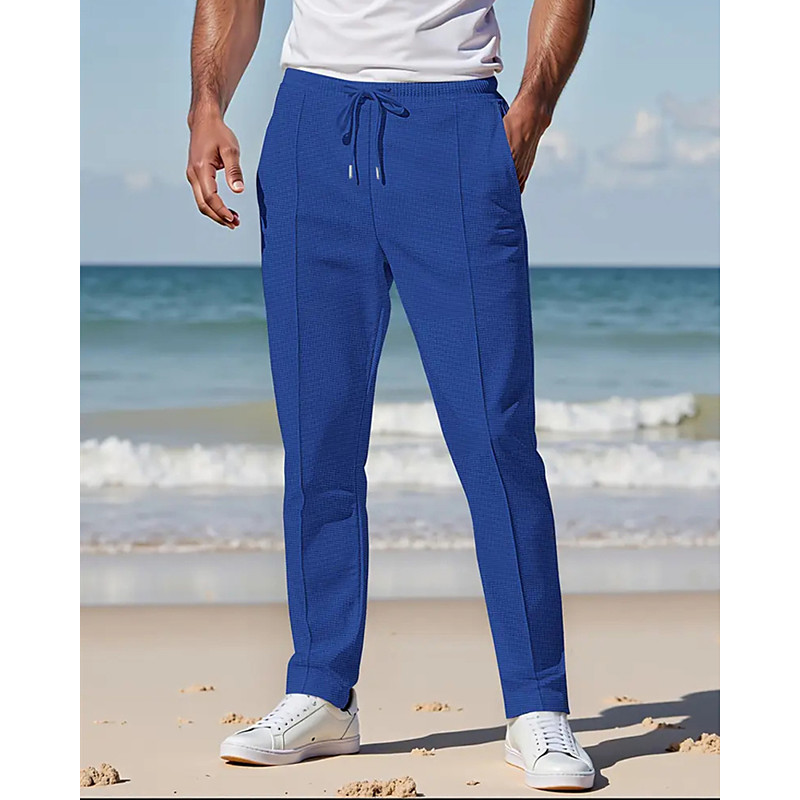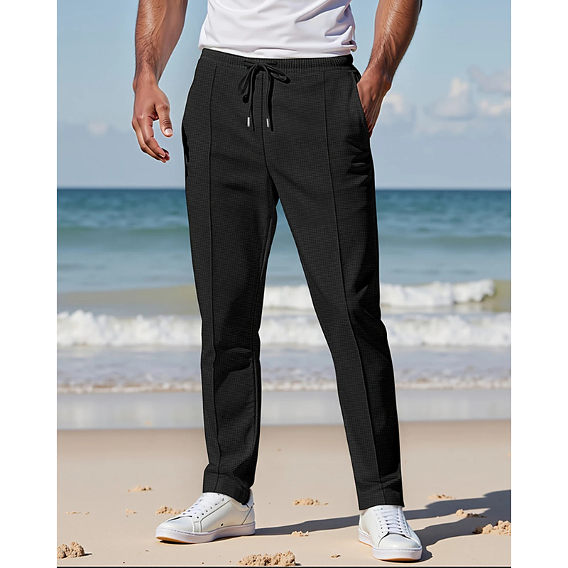 Men's Sweatpants Trousers Pleated Pants Waffle Pants Pocket Elastic Waist Drawstring Plain Comfort Sports Outdoor Daily Fashion Casual Black White Micro-elastic