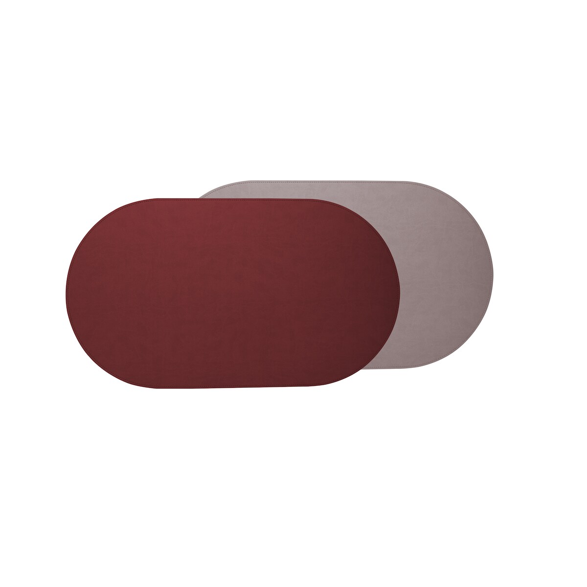 Stil Casa Set 12 Tischsets & Läufer, PU genäht, 44x31 & 58x38 cm, Dollar-Finish, Farbe Bordeaux/Rosa.