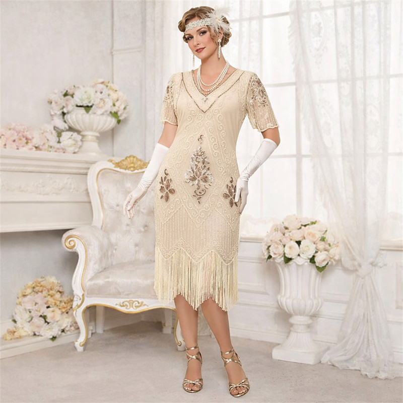 Roaring 20s 1920s Cocktail Dress Knee Length Flapper Dress Dress Outfits Normal Sleeveless The Great Gatsby Charleston Plus Size Wedding Guest Sequins Tassel Fringe Sequin V Neck Fancy Dress Women's