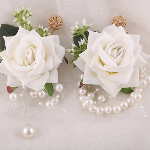 2-teiliges Set aus roter Rosen-Corsage und Boutonnière, bestehend aus einem Corsage-Armband und einem Boutonnière für Herren, ideal als Dekoration für Abschlussball, Hochzeit, Party oder Anzug.