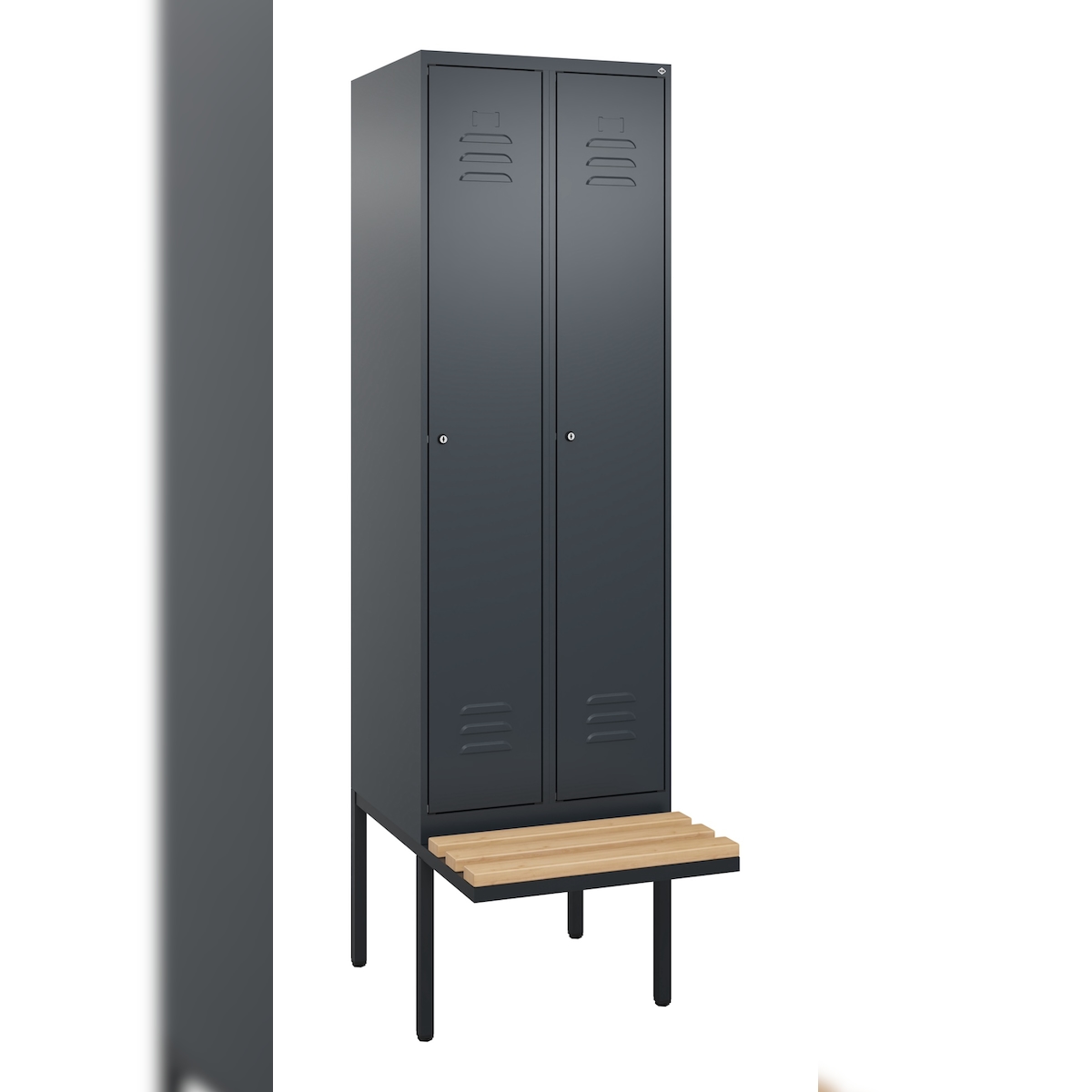 C+P Spind Classic PLUS, schwebender Sitzbank aus Buche 2 Abteile, HxBxT 212x60x82cm, Zylinderschloss, Anthrazit von PROREGAL