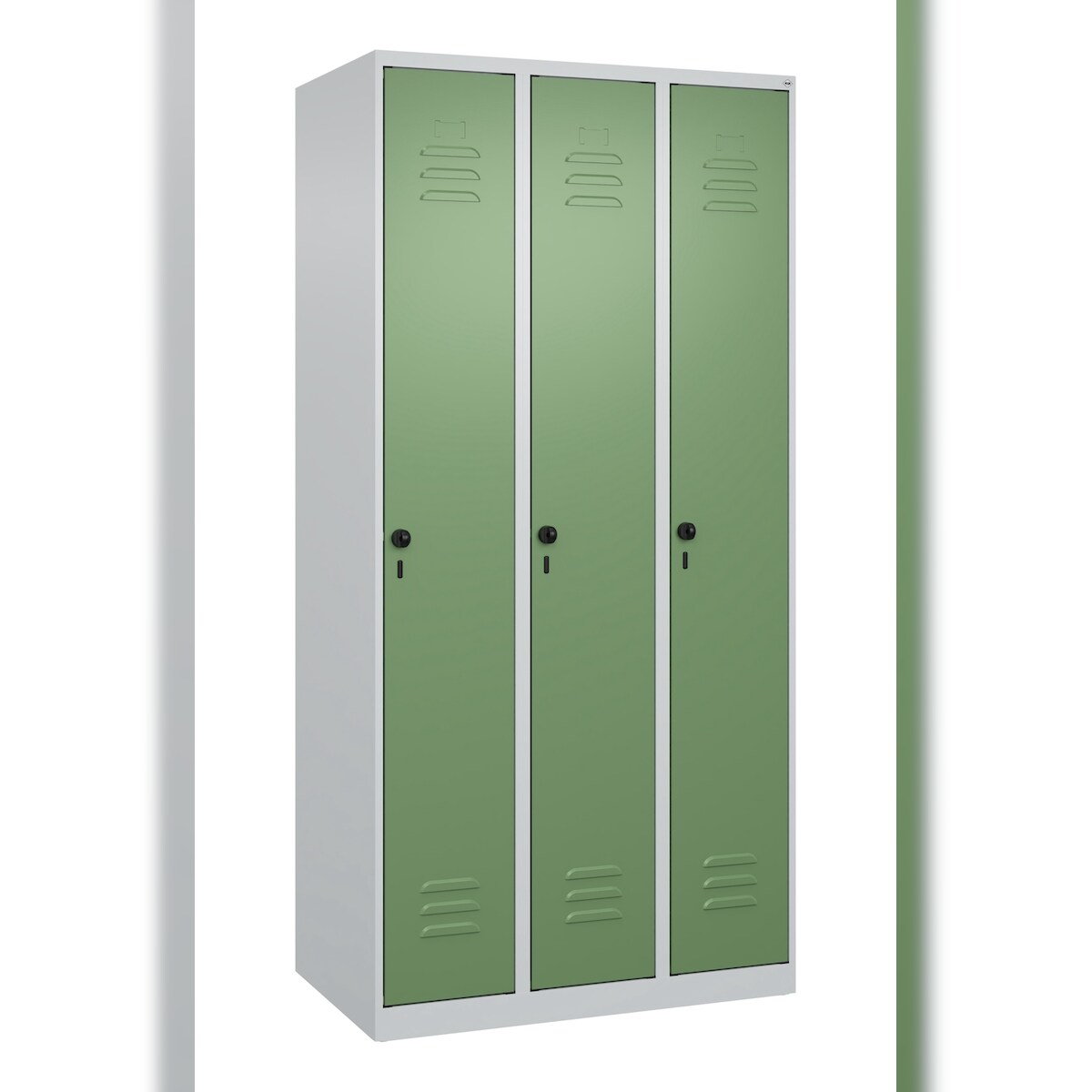 C+P Spind Classic PLUS, 3 Abteile, HxBxT 185x90x50cm, Sicherheitsdrehriegel, Hellgrau/Resedagrün von PROREGAL
