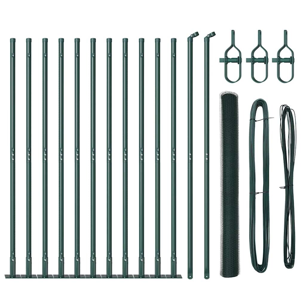 vidaXL Zaunpfosten Grün 25 x 1,6 m (13 mm Maschenweite) Stahl und PVC
