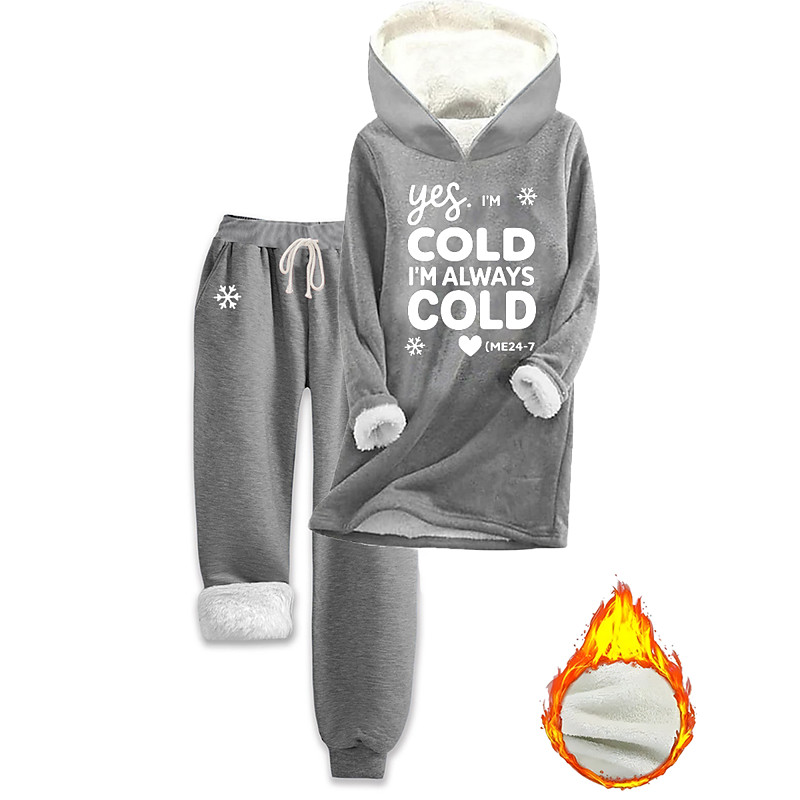 Women's Warm Daily Two Piece Sets Tracksuit Pants Sets Long Sleeve Hooded Graphic Letter Drawstring Print Casual Daily Blue Pink Gray Fall Regular Fit