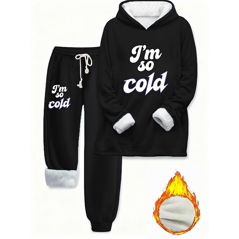 Women's Warm Daily Two Piece Sets Tracksuit Pants Sets Long Sleeve Hooded Graphic Plain Drawstring Print Casual Daily Black Dark Pink Blue Fall Regular Fit