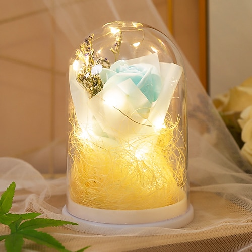 1 pz 15 10 cm Natale Halloween San Valentino Festa della mamma Fiore eterno luminoso Copertura trasparente Rosa simulata Luce notturna a led Luce decorativa da tavolo Luce pendente Batteria AAA