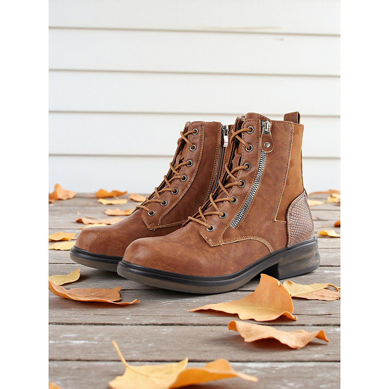 Women's Red Christmas Combat Boots - Trendy Holiday Lace-Up Boots for Women - Perfect for Christmas Eve, Winter Fashion and Casual Chic